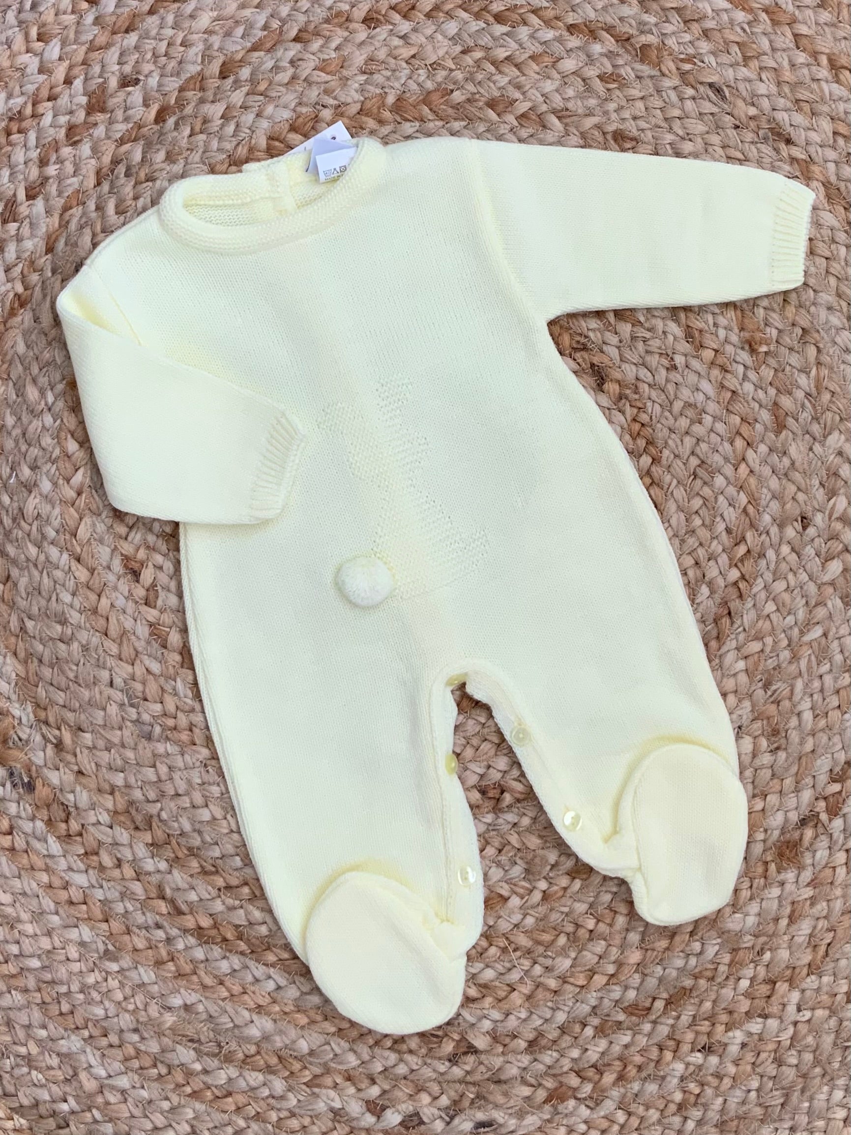 BUNNY Babies unisex lemon knitted all in one romper bunny motif