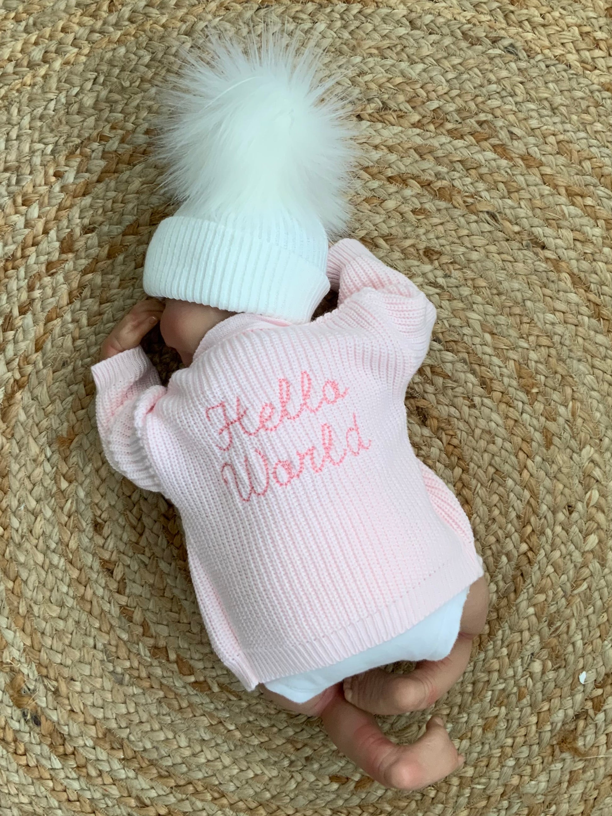 Hello world babies v-neck embroided cardigan white beige pink blue boys girls unisex gift