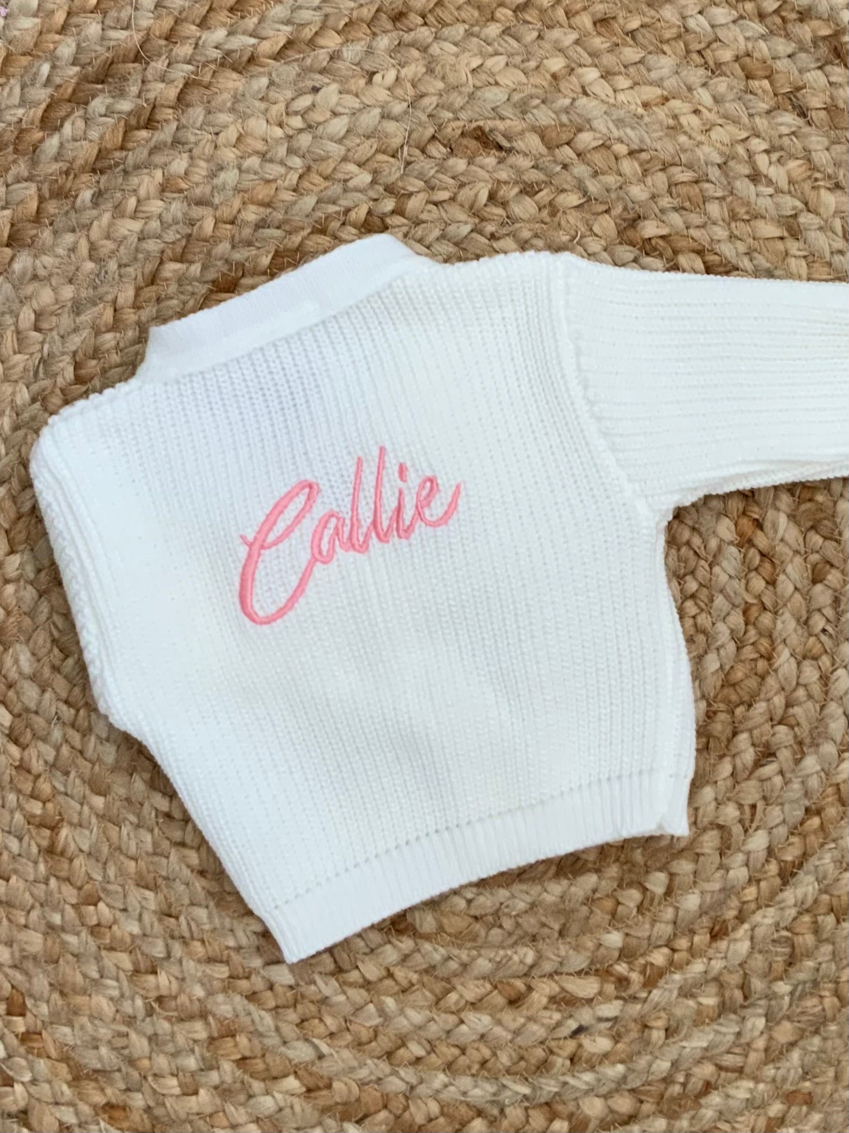 PERSONALISED babies v neck ribbed cardigan gender reveal baby announcment